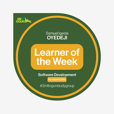 Ensure you share your badges on Twitter and LinkedIn by tagging @3MTTNigeria and using the hashtag #3MTTOgunStudygroup and #My3MTT