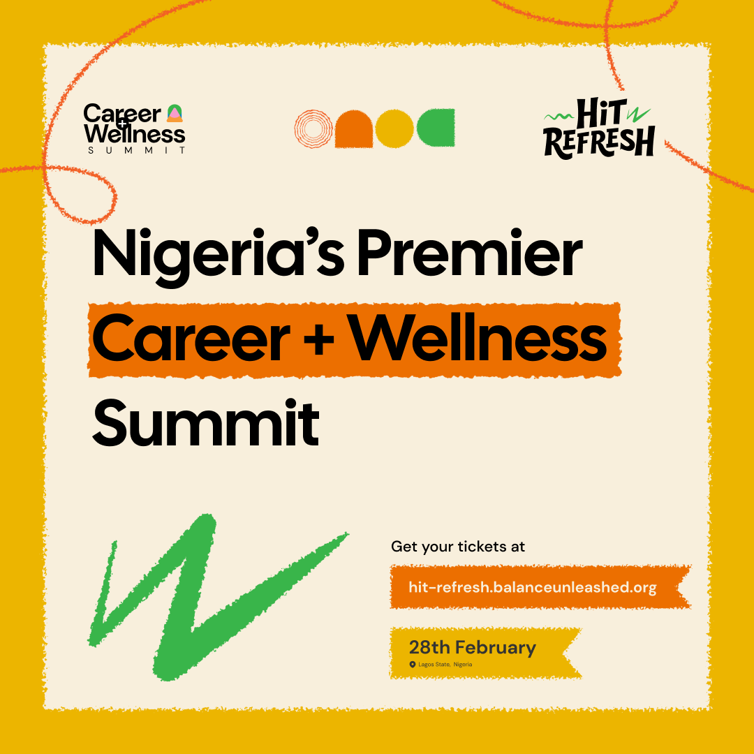 HIT REFRESH, Nigeria’s premier Career + Wellness Summit has been designed to help you reset, realign, and perform at a high level without burning out. This is where you’ll learn from top voices and industry leaders in Nigeria how you can turn your skills into real market value, grow your career, and build sustainable wealth.